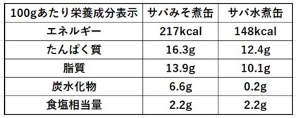 ※成分表のとおりで、みそ煮缶のカロリーは水煮缶の約1.5倍です。